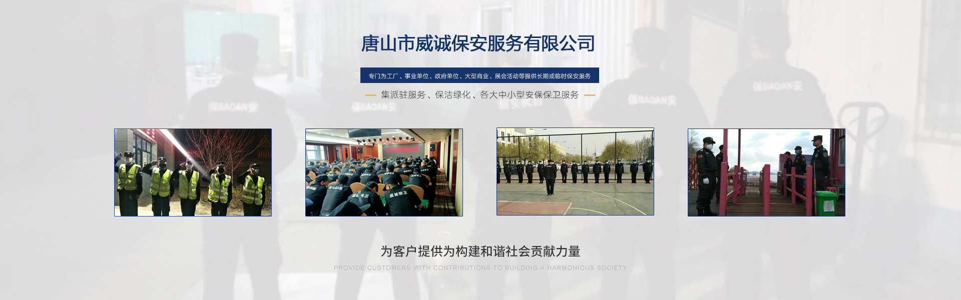 唐山市威誠保安服務有限公司自成立以來以“嚴防死守、忠于業(yè)主”為服務原則,以“客戶滿意、 合作共贏”為根本目標。以科學的管理、多方位多層次的服務,建立了首問責任制,完善了走訪、回訪 、滿意度調(diào)查、末位淘汰的預警管理,不斷提高服務質(zhì)量,提高業(yè)主滿意度,提高企業(yè)形象。秉承“誠 實守信,紀律嚴明,團結協(xié)作,致精致誠”的服務理念,為客戶提供高品質(zhì)、多方位、專業(yè)化的保安服務。 本公司制定了嚴謹?shù)亩ㄏ蛘猩?、崗前培訓、考核錄用、崗中培訓、持續(xù)培訓、末位淘汰制等一整套完善的管理體系??梢愿鶕?jù)客戶的要求實地勘察評估,以量身定做的方式提供安保防范服務。